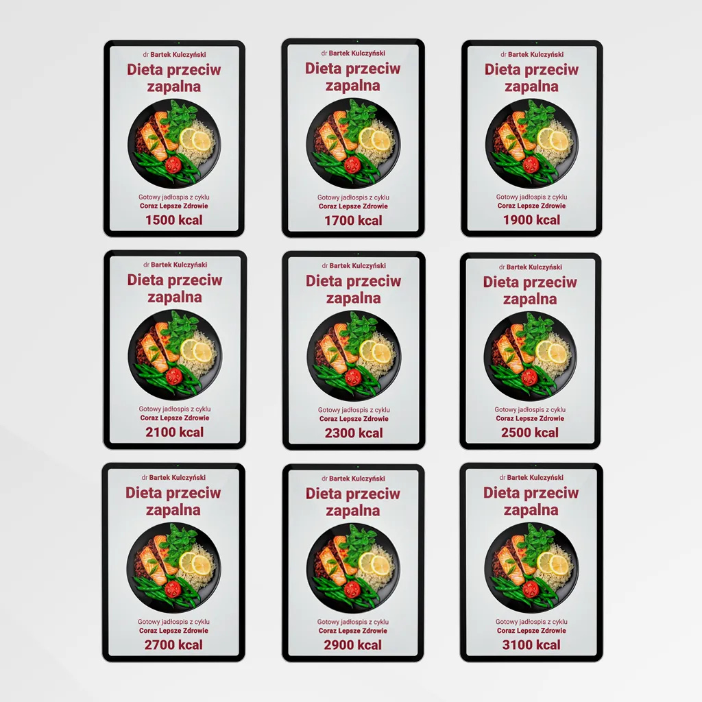 Najskuteczniejszym niefarmakologicznym sposobem na obniżenie toczącego się stanu zapalnego jest właściwa dieta: dieta przeciwzapalna. Pomaga ona usunąć to, co „napędza” większość metabolicznych chorób przewlekłych. Zapraszam Cię dziś do odbioru mojej diety przeciwzapalnej, czwartej już gotowej diety z cyklu „Coraz Lepsze Zdrowie”.